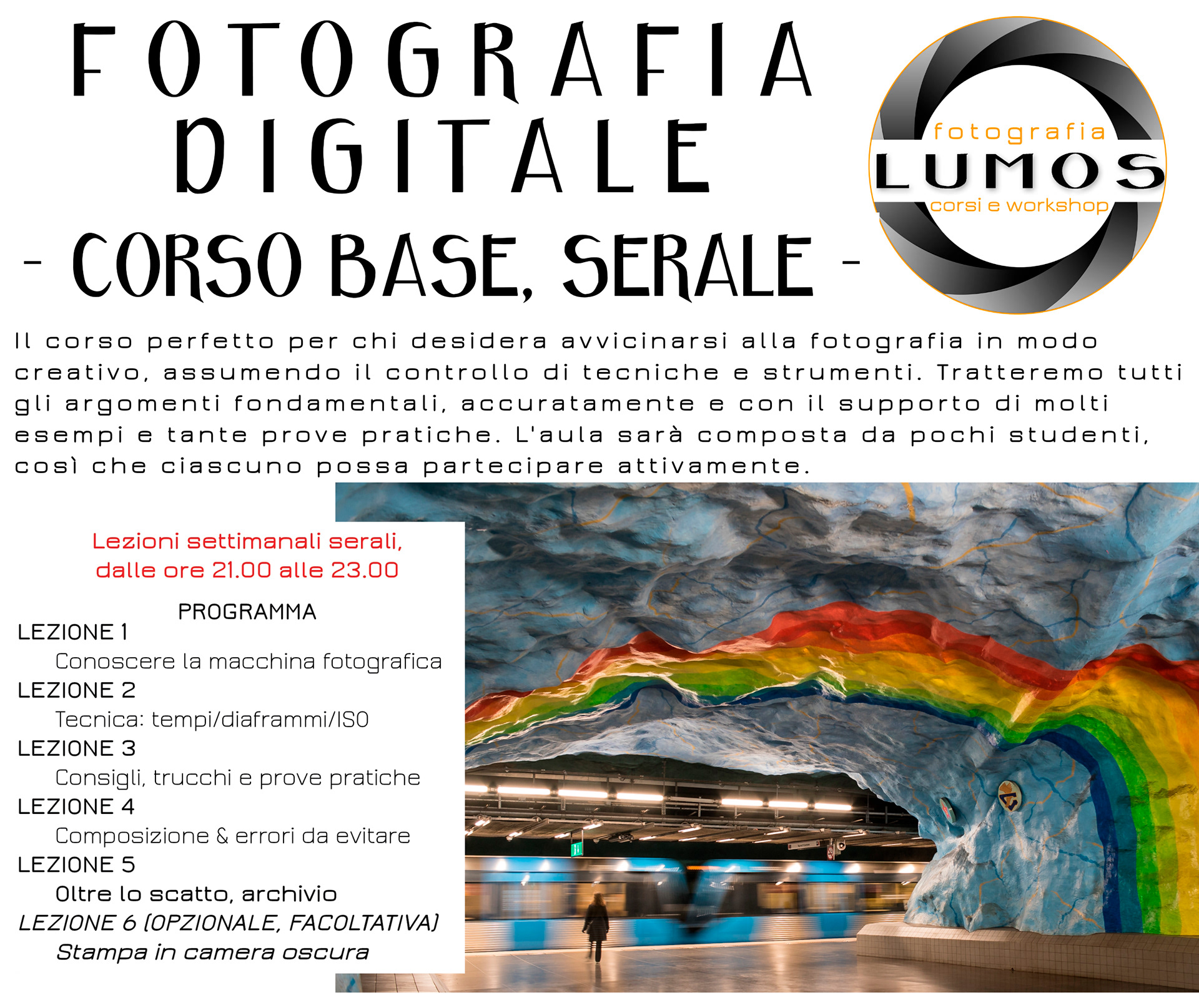 I nostri principali Corsi di fotografia, che proponiamo ciclicamente, con frequenze variabili.